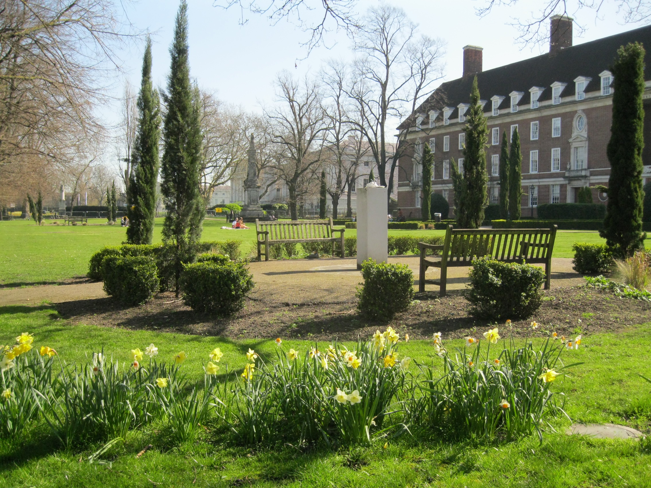 Also in the gardens is a stone monument with a figure of Britannia, which was erected in 1898 to commemorate the 20,000 of so former residents of the Hospital who were buried in the cemetery between 1749-1869. There are a number of other monuments within the grounds of Devonport House, which are laid out with grass, mature trees and ornamental beds. Devonport House is used as a conference centre and provides student accommodation. The site is within Greenwich Maritime World Heritage Site, designated in 1997.