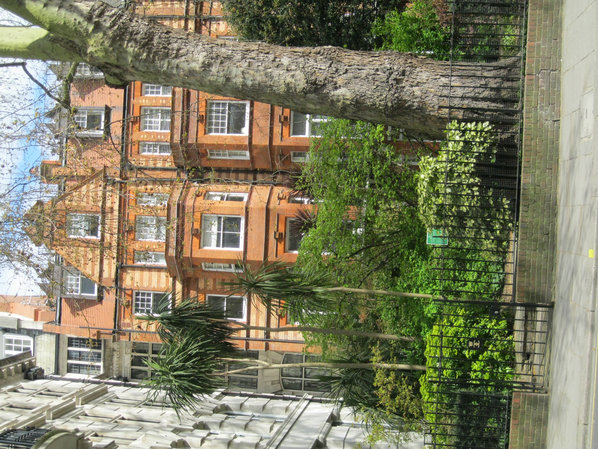 By the mid-late C19th the area south of Sloane Square was somewhat run-down and considered suitable for redevelopment by the Cadogan Estate, the Holland leases expiring in the late 1870s. This redevelopment brought changes to the street pattern and street names, and the then Cadogan and Hans Place Estate Ltd required all buildings to be of red brick, in revived 'Queen Anne Style'. Lower Sloane Street, Sloane Gardens and Holbein Mews were built by William Willett. The houses on the east side were designed mainly by H.B. Measures. The communal gardens of Sloane Gardens were for the use of leaseholders of adjoining houses and were managed by a Committee of householders from fees paid by the leaseholders. In 1928 the gardens were described as 'a long narrow enclosure . . . Laid out as an ornamental garden with well-kept lawns and some fine trees. Very attractive' (Report of Royal Commission on London Squares, 1928). The western boundary of the gardens is the busy Lower Sloane Street and the gardens consequently lack the feeling of enclosure that is such a feature of many of the borough's gardens and squares. The garden to the rear of 5-39 Sloane Gardens is separated from Holbein Place by a high brick wall and contains mature plane and other trees.