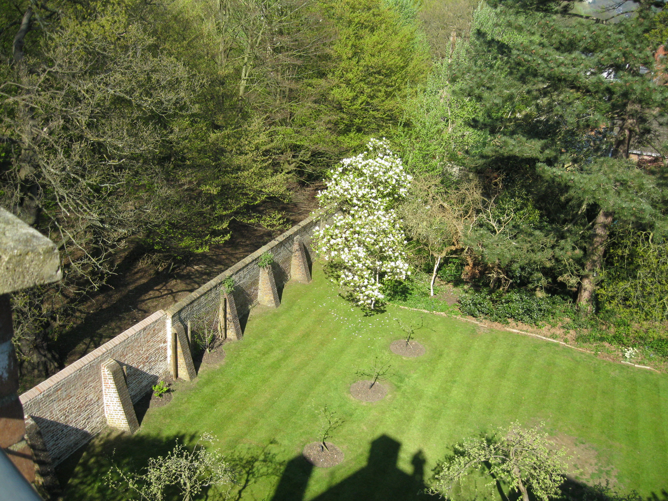 Dorich House is a detached 3-storey brick house overlooking Richmond Park with roof garden, large lunette windows and studio on the north side. It was built for the Estonian sculptor Dora Gordine (1895-1991) and her husband the Hon. Richard Hare, a diplomat and authority on Russian art and culture, and still contains important collections of Gordine's works and Russian art. The plot of land purchased by the Hares for their new house was once owned by the Duke of Cambridge and had been the site of 2 orchards. The house was designed by Dora Gordine herself in Art Deco style, described by Nikolaus Pevsner as 'an idiosyncratic creation slightly reminiscent of some German Expressionist buildings'. Their garden was simply laid out with lawns, rose beds along the boundary wall with Richmond Park, a shrubbery and tennis court. Kingston Hill was screened by mature oaks and horse chestnuts. They kept a number of the fruit trees in the former orchard, and some of these remain in the garden, now around 100 years old. Other trees remaining from the Hares' time include a mulberry, hornbeams, orchard trees, magnolia and conifers. Rings of daffodils were planted around the apple trees in the orchard where the Hares took tea and, a keen gardener, Dora made jams and chutneys with produce from the garden. She is also said to have encouraged the sitters for her sculptures by enticing them to enjoy the garden.