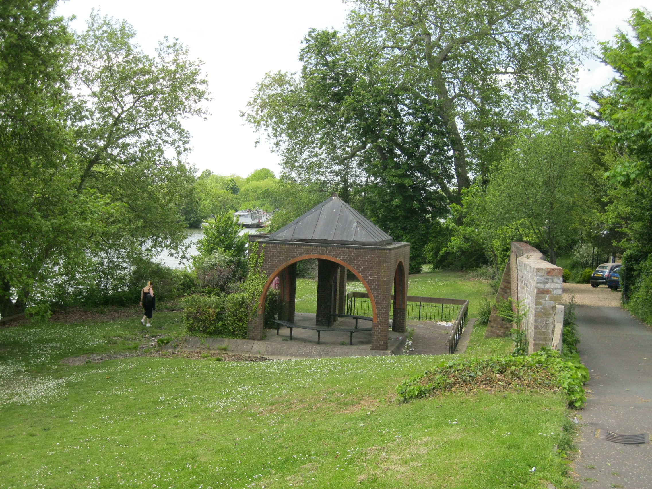 St Albans Riverside is one of a number of riverside gardens between Hampton Court Road and the Thames, here named after the 5th Duke of St Albans who moved to Hampton in 1796 to a riverside house first called St Albans Bank, now St Alban's Lodge. In the C19th the riverside near Hampton Court became a popular tourist attraction in its own right and was important for its boat-building works. Among these was boat-builder Tom Tagg, who leased the ait now known as Taggs Island where he built the Island Hotel in 1870. The riverside gardens remain popular, and have lawns, trees, shrubberies and an area of ornamental planting around a sundial.